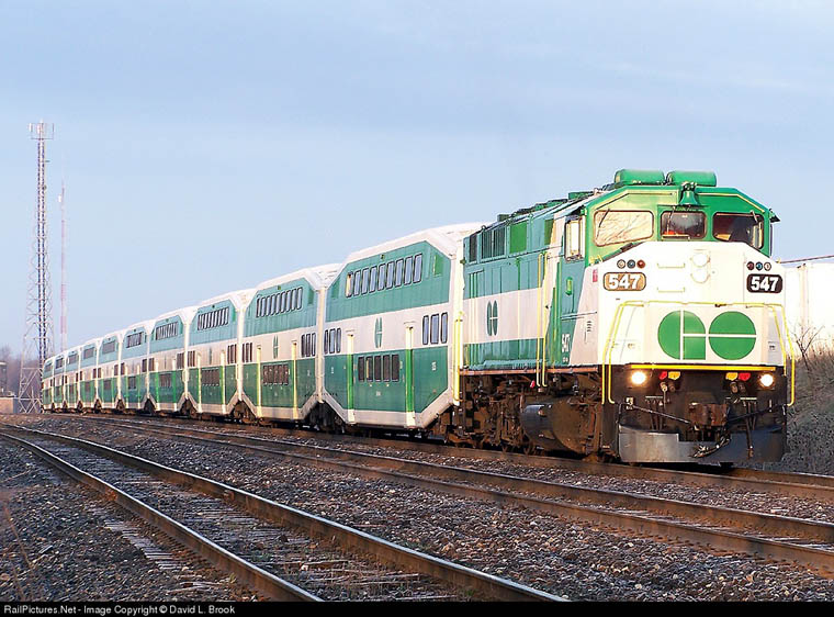 547 GMD F59PH with deadhead equipment eastbound 160 last morning train from Guelph Junction yard. April 29, 2005 David L. Brook