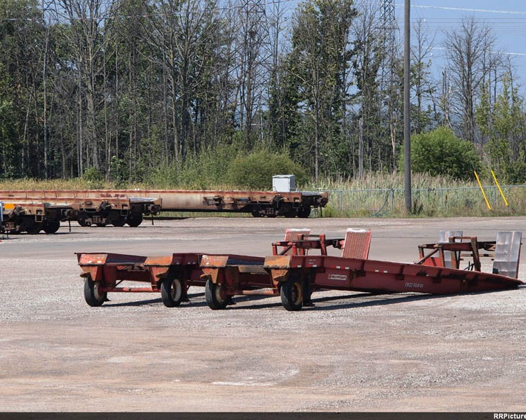 Portable ramps which are placed against end of flat car to load/unload trailers.
