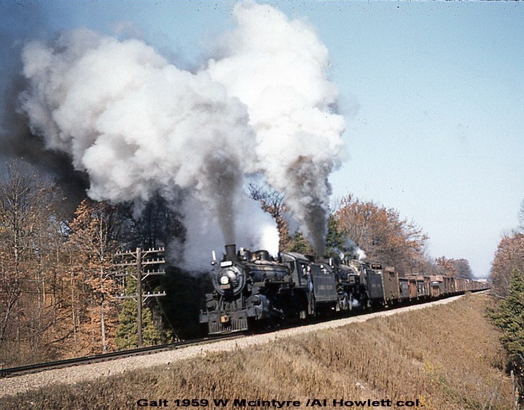 Two views of 2233 at Galt. Bruce Chapman Collection This is an assist engine for a westbound Extra. Note the markers