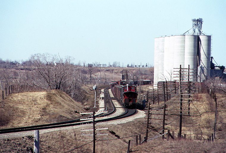 Extra 953 West "Stone Train" at Galt bound for Guelph Junction.
