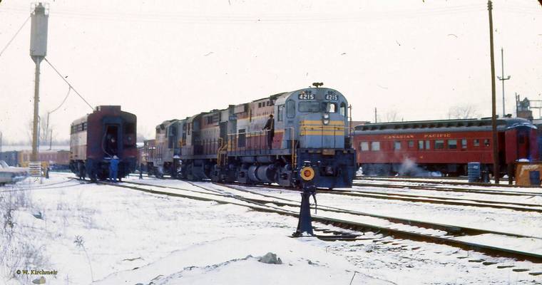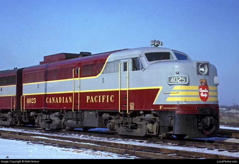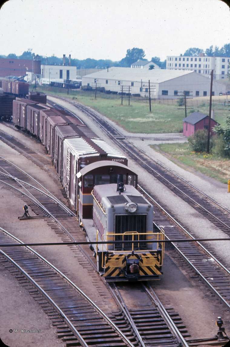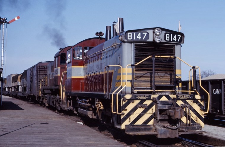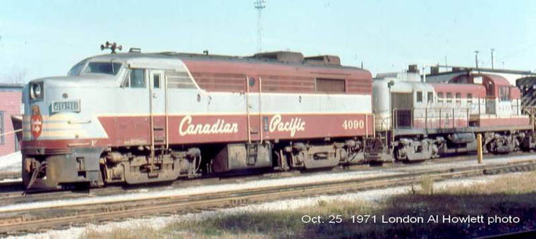 Photograph gallery 4 Diesel Engines Diesels came to the yard first, with "Made in London" GMD SW8 800 HP yard switchers along with ALCO S2 1000 HP switchers 7062 and 7063 in Windsor. The last 0-6-0 anywhere on the CPR, 6275 finished up in Goderich yard at 12 Noon Saturday December 6, 1958 and was replaced by MLW S3 6589 until delivery in early May of 1959 of a new, tiny 500 HP CLC diesel-hydraulic switcher, number 17. Road freight diesels came in the form of MLW RS-3's and FA2 "covered wagon" A and B units, later MLW RS-10's and RS-18's all of which were maintained at St.Luc (Montreal) as roundhouses everywhere were scaled back or closed down.