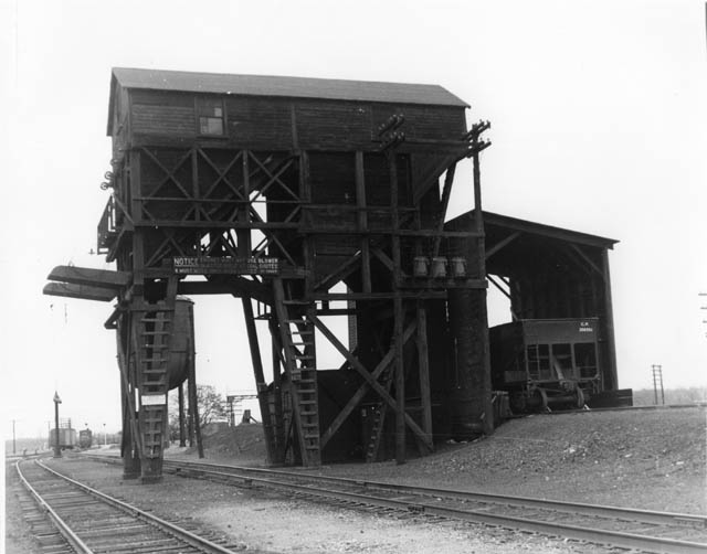 Water tank (40,000 gals.) hides behind 100 ton coaling plant. Fall 1958 view. Al Paterson Plan for original 50 ton coaling plant 1916 and 50 ton additional pocket