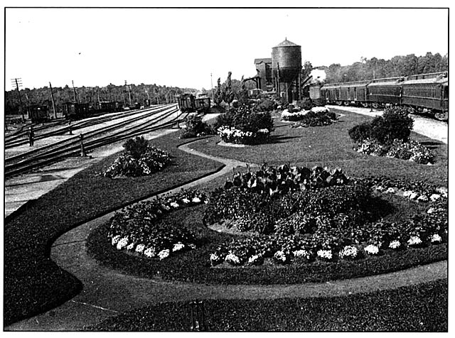 Elaborate garden on west side of the station. 1923. CRHA Archives CPR Album