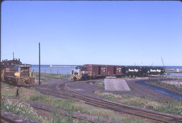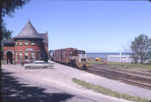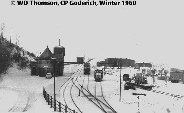 was replaced by a Declining traffic on a line that ran 80 miles to serve Goderich brought about its demise, the last run being made on December 16, 1988. (Abandoned December 31st) The CNR served Goderich from Stratford via a shorter distance and the small villages in between held little remaining agricultural traffic for the CPR across the flat open land that was difficult to plow in winter. Grain traffic died at Goderich the same as at Owen Sound with changes to grain rates, when the "At and East" subsidy was eliminated which very quickly killed off all grain traffic from Western Canada. Road salt, was a major commodity, but it was both seasonal and offered only a low freight rate, while at the same time the covered hopper cars were corroding out at an alarming pace, faster than they were being written-off! It was a dead loss! The station in Goderich has been preserved, relocated nearby and turned