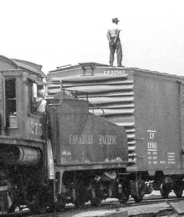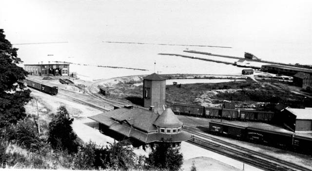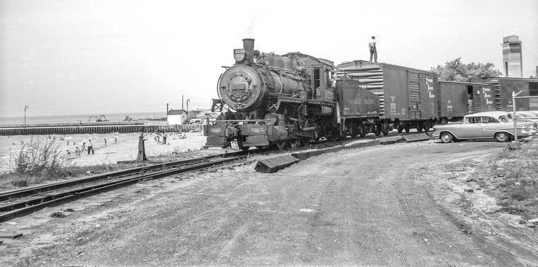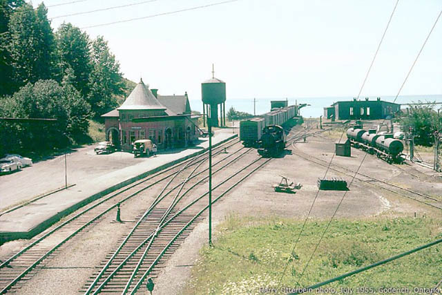 6537 working Guelph Yard job with well-known engineer Don Broadbear. G2G Rail Trail (Guelph to Goderich) Guelph and Goderich Railway. In 1886 the GJR charter was revised to allow for an Extension to Goderich as a sought after source of traffic at the harbour. The CPR delayed undertaking this work for years while Guelph hounded them to get on with it. By December 1903 the CPR finished three surveys; first via Linwood, Atwood, Brussels and Listowel; second via Conestogo, Linwood, Atwood, Brussels; and third via Seaforth and Clinton. Finally, in 1904 the Guelph Junction Railway announced it would be applying to Parliament seeking a charter to incorporate the Goderich & Guelph Railway, between Guelph and Goderich along with branches to Listowel, St.Mary's Stratford and Clinton. The CPR caved in and agreed to honour their intention to build the long-sought after 80 mile Extension, with work beginning in 1904. It began at Norwich Street (Mile 31.75 Goderich Sub.) The G & G was opened between Guelph and Elmira on June 1906; to Millbank by the end of August; Milverton November 15th. And finally, Goderich to Blyth on August 26,1907, this section delayed by a dispute with the GTR over use of the harbour area. At the same time the GJR was re-laid with 80 lb. rail to match the G&G. The first passenger train left Goderich August 26,1907. The line to Guelph Junction was 105.4 miles with a further 16.4 to Hamilton Junction totalling 111.8. This latter portion of the line was built under the charter of the South Ontario Pacific which was leased to the CPR effective January 1, 1912 and opened July 1, 1912. The grade beyond Ariss was mild (0.75%), for the most part with the major exception of the climb out of the harbour at Goderich to Blyth which cut tonnage to less than half. (855 tons vs 1770 for a D10). A spectacular 695' steel bridge over the Maitland River in Goderich has survived abandonment to become part of a hiking trail. A 4-stall enginehouse with 70' turntable was located right on the waterfront along with a fine, large brick station and a traditional enclosed octagonal water tank. Grain, and salt mined at Goderich was the main traffic handled. October 6, 1904 the G&G was leased to the CPR for 999 years! By 1913, control of the common stock was in the CPR's hands. But, it could only reach the rest of the CPR's vast network over the GJR! And, here once again the City of Guelph proved astute in securing good revenue for this traffic along with a prohibition against diverting G&G traffic off the GJR! In other words if the CPR were to build another line connecting to the G&G somewhere else, they could not re-route traffic over it. Very astute indeed! Goderich and Guelph were B class yards, two of a few on