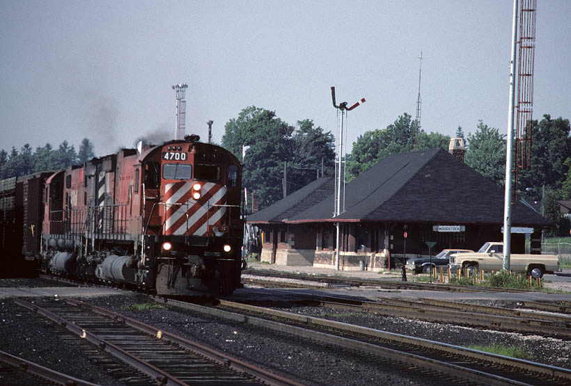 Extra 4700 West, second to last westbound train at Woodstock. July