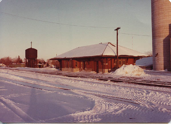 Ayr, two views, February 1978. Note the old steam locomotive water tank! Eugene Burles