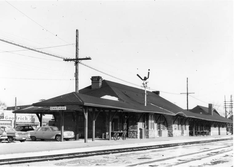 Chatham station (built 1899) and express building. February 1965. Al Paterson