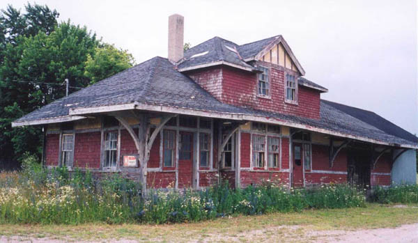 The station at Monkton, Ontario was named West Monkton to avoid confusion with Moncton, New Brunswick. Shown here in 2000, long after abandonment of the line December 31, 1988, being used by a construction company. Jeff Henricks