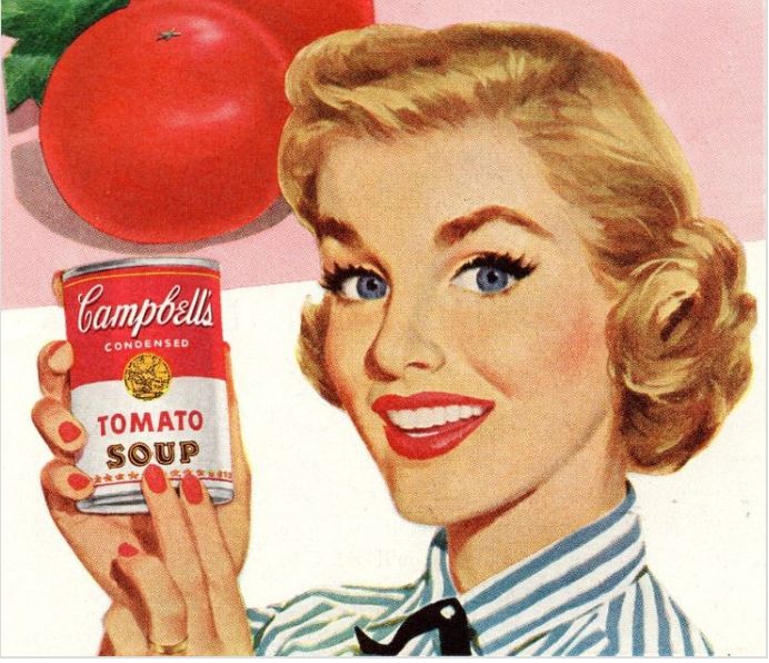 Advertisement 1957. Price of a can of soup was 10 cents!