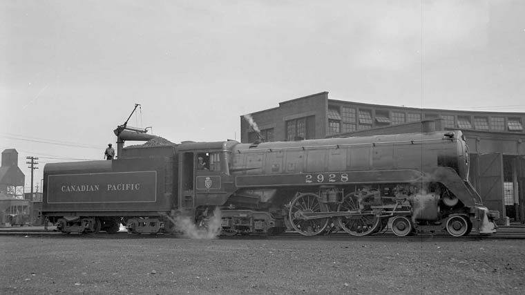 2928 CLC 1942 3/38 Second last F1 class. August 19, 1950 Harry Hart/Robin Hart Collection Note: Two of these very light engines were assigned to light trains to Havelock and Hamilton as well as Hamilton-Goderich. |