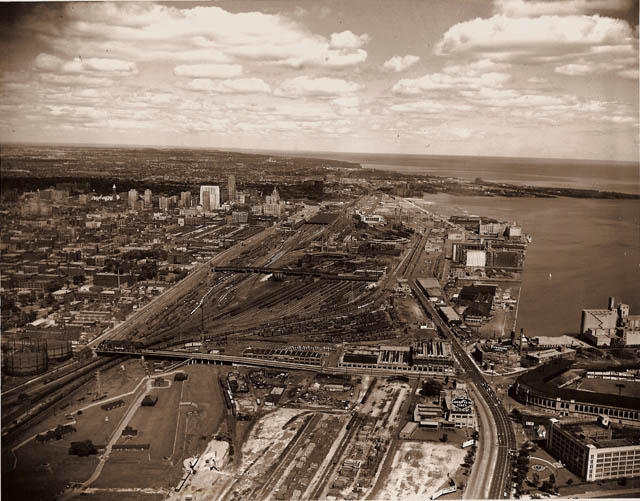 to right (west) of above view. NEW Aerial view John Street and Union Station 1953 Bill Thomson