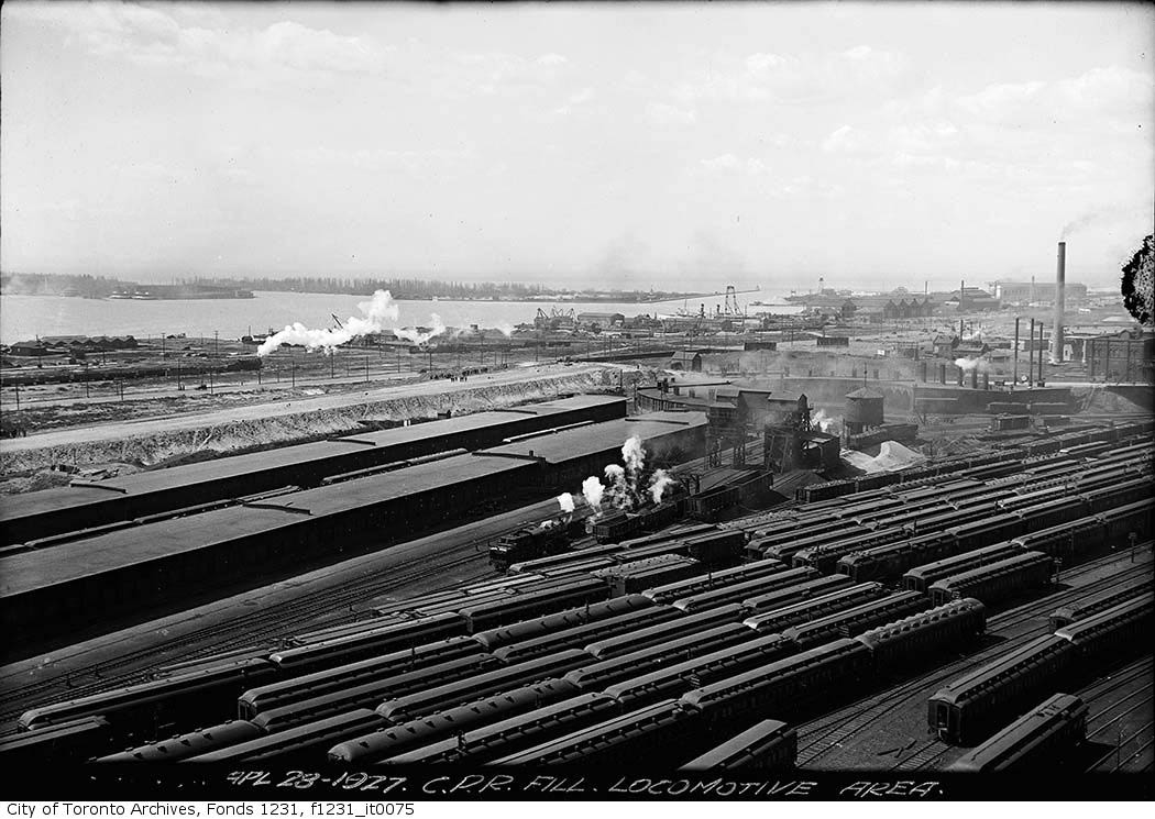 Near foreground of above photo west end of CNR Bathurst Street Yard from Front Street West just east of Bathurst Street.