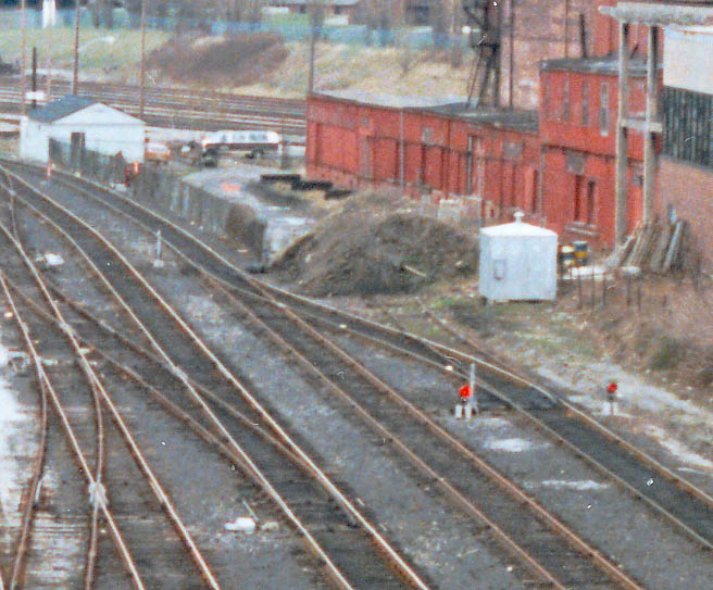 Closeup of "Dump", where runaway cars were derailed after getting away from crew in Parkdale yard.