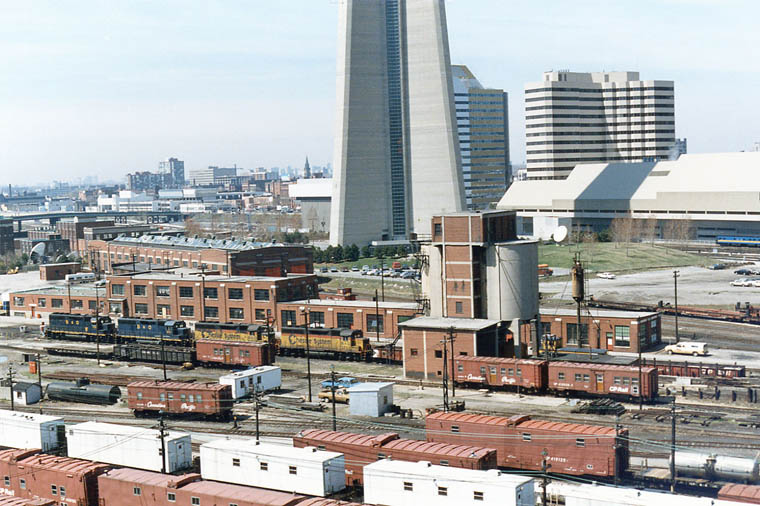 Leased C&O units are stored waiting disposal. The tank car body on the ground at left is for diesel lube oil. The silver tank mounted on a flatcar at right is for potable (drinkable) water on work gangs.