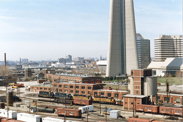 CN Tower is in the background. Behind the stores building is the car shop and off CPR property is the John Street Pumping Station that supplies water to the downtown area. The stack at far left is at CNR Spadina roundhouse.