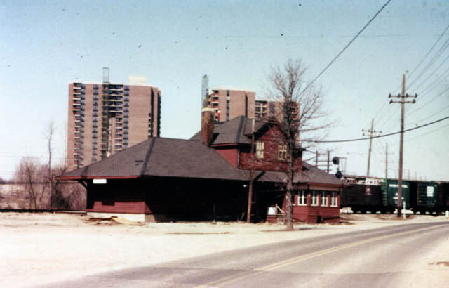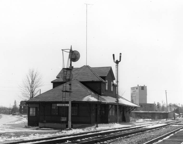 Cooksville Station. Small sign on end of station Canadian Pacific Telegrams