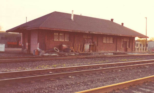 Former Parkdale CP Express building, used as a truck garage by Fast Frate. 1983 Jeff Henricks Note door cut into north wall and missing roof section that once connected to the station.