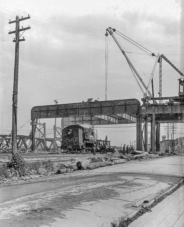 GTR 2587 with work train during construction of Queen Street Viaduct. 6/28/1911
