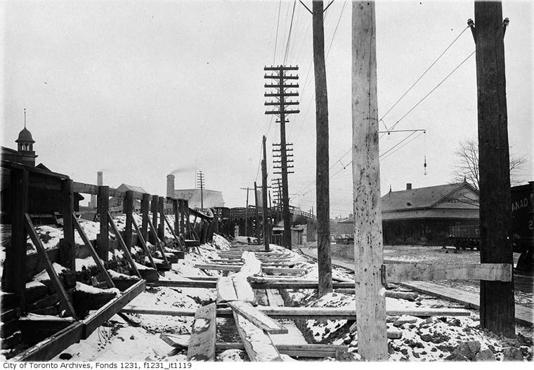 as the "Depot". Located upstairs was the Calling Bureau Street address: 1 Old Weston Road, Toronto. Note: Dupont Street (Royce Avenue) underpass out of view to left where platforms end.