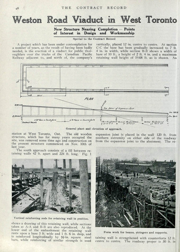 Weston Road Viaduct Note: This is what was known in later years as the Old Weston Road bridge with that portion of road renamed beginning at Dundas Street West and going north past Davenport Road and St.Clair Avenue West to Rogers Road.