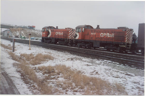in left background is coming from the sand house. 7077 was the first diesel delivered by Montreal Locomotive