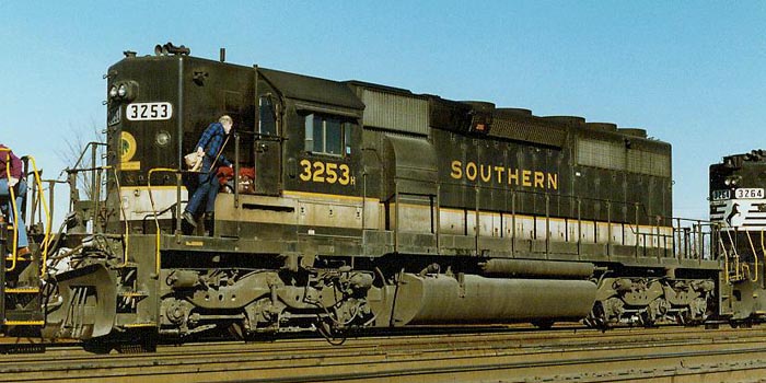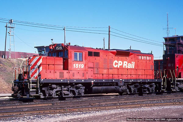 December 2000 from a long-stored fuel tender, Here we see 1519 GP9u Ogden 3/1981 (ex 8489 GMD A687