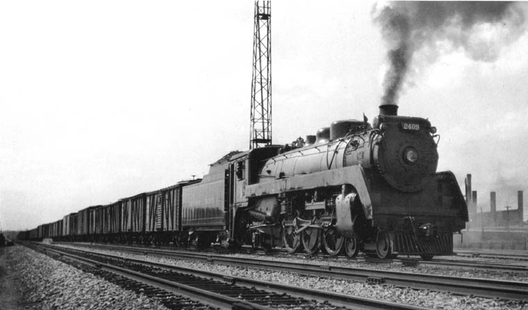 Getting underway with 45 cars, engine No. 2409 is seen