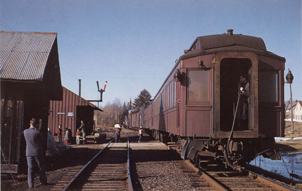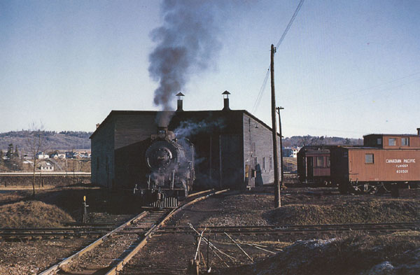 D-4 580 tons. There were troubled times for the "Kick and Push", as the Kingston and Pembroke was irreverently referred to, as was common with early railways. It was in receivership from 1894 to 1898. Coming out of receivership, the K&P had in 1899, 9 locomotives, 18 passenger cars, 172 freight cars, 2 snow plows and 2 flangers. The annual report for 1900 showed gross revenue of less than $500 a day, which produced a profit of about $120 per day. Improvements made in 1912 included rebuilding of several bridges, some 65 lb. rail, much re-ballasting and a 70' turntable at Kingston. This turntable was finally relocated in 1974 to Wakefield, Quebec for use by the steam excursion trains operated first by the Bytown Railway Society and later by the Hull-Chelsea-Wakefield (tourist) Railroad which still uses it. The majority of stations were flag stops, in common with most branchlines and also in common with many slow-paced branches the conductor would stop the train anywhere for local residents. Passenger service declined to just mixed trains. The September 1936 employee timetable indicated a pair of Daily except Sunday mixed trains that met at Sharbot Lake where connections were made with CPR (O&Q) Ottawa, Toronto and Montreal trains. One more mixed operated between Sharbot Lake and Kingston. The last through mixed trains between Kingston and Renfrew, (Daily Except Sunday), ran on Saturday June 15,1957, as M612 engine 417 southbound and M613 engine 492 northbound. The small D4 class Ten-Wheelers were always adequate for the small amount of traffic handled. Following this there was a Renfrew-Sharbot Lake mixed, and a Sharbot Lake-Kingston mixed. April 1959 employee timetable was the last with a Kingston mixed train service. October 1959 had Renfrew-Sharbot Lake twice a week and even this ended on June 21, 1960 which was the last mixed train on the subdivision. Sharbot Lake - Renfrew Mixed Robert J. (Bob) Sandusky
