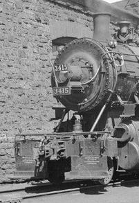 M4 3415 taking water. Note bell hung up! Bruce Chapman Collection
