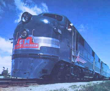 The turquoise coloured Train of Tomorrow hauled by an EMD E7 passenger diesel began its 65,000 mile tour on May 26, 1947 in the U.S.A.. It was to show the public a modern way of train travel in this post World War II era. The railroads were all in need of renewal of worn over-used equipment and many large orders began.