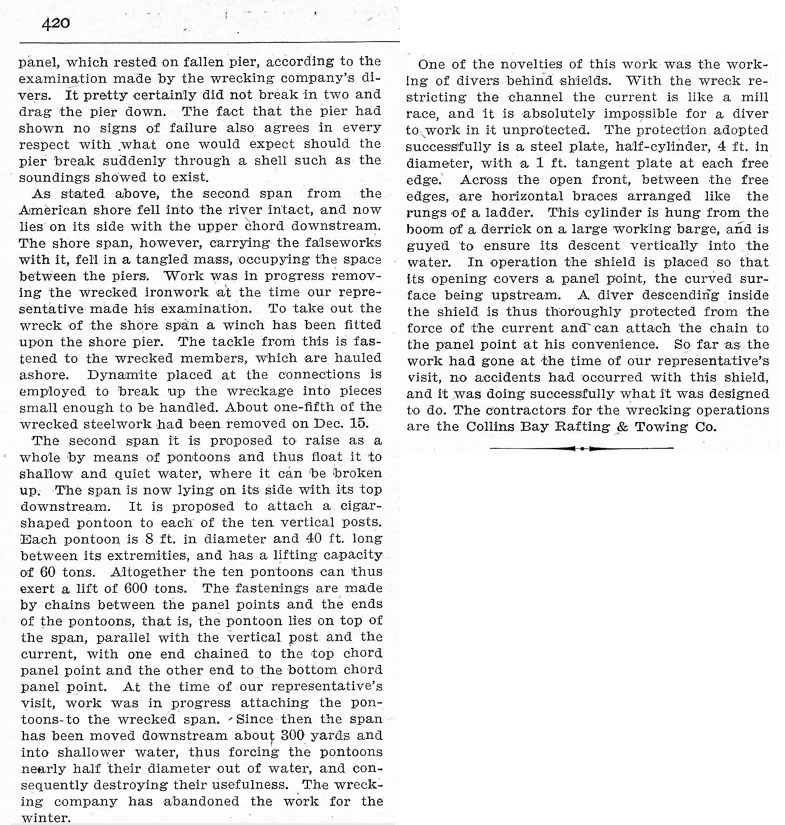 & New York Railway in Canada built a rail line Unofotunately, disaster struck on October 6, 1892 while the American bridge was still under construction by Phoenix Bridge Company when it suddenly collapsed without warning killing 15 workers and injuring another 18. Phoenix was found at fault. First chartered July 22, 1897 the line was under control of the New