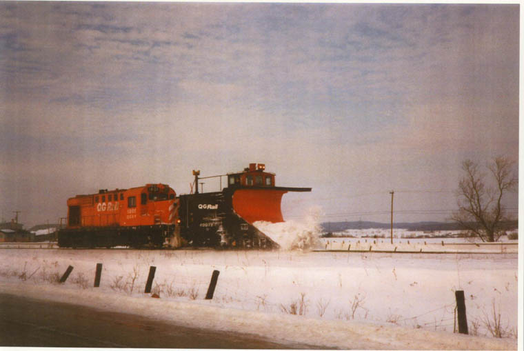Quebec Gatineau 1801 with snowplow 400784, all ex CPR including the track. St-Basile, QC 2/13/99 Roger Boisvert