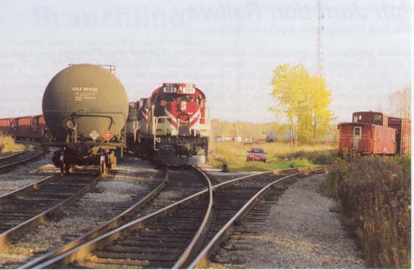 383 (ex SOO 383) EMD GP7 and MLW RS-18 181 switching in Guelph Junction.