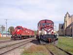 184 RS-18 (ex INCO 208-4) with 502-501 at Tillsonburg shop area.
