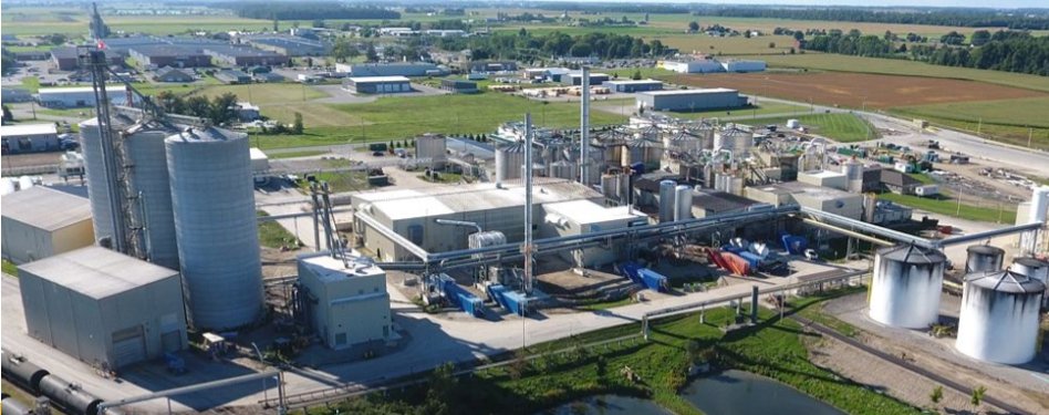 Began production October 2008 sourcing corn from Cargill. Other ethanol plants in Ontario include: a 400-million-litre facility owned by Suncor St. Clair in Sarnia; a 200-million litre plant owned by Greenfield Specialty Alcohols 200-million product in Johnstown in Eastern Ontario; another similar-sized operation by Greenfield in Chatham; a smaller 27-million litre operation in Tiverton; and Kawartha Ethanols' 120-million litre plant at Havelock. NOTE: