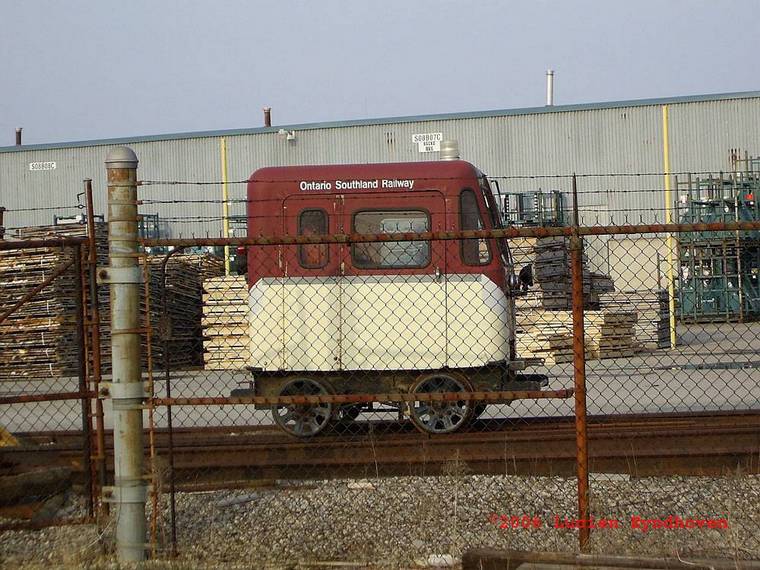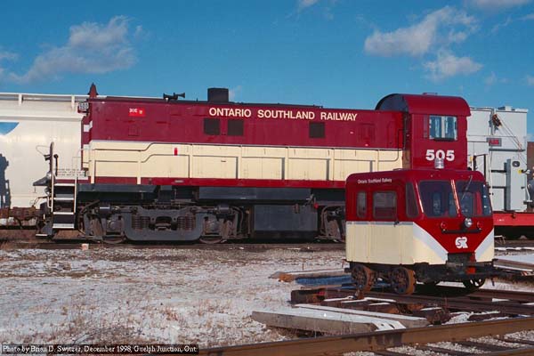 Enclosed cab track motor car nicely repainted. Guelph Junction 12/1998 Brian D. Switzer