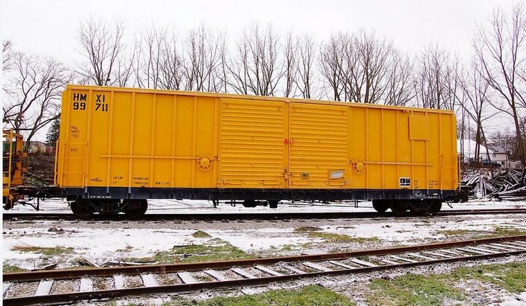 HMIX 99711 with incorrect initials on double door box car. Ledcor Communications