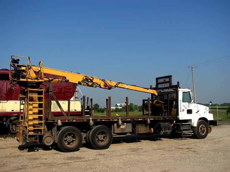 Boom equipped flat bed Hy-rail. Great for handling ties! More recent addition. Walter Pfefferle .