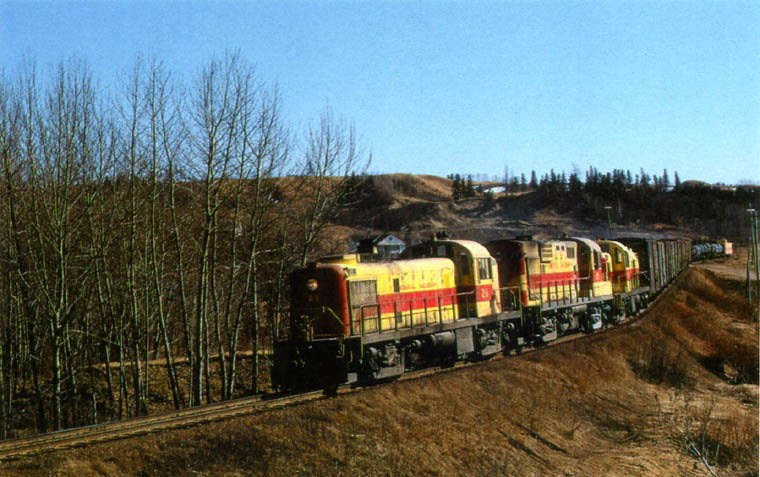 Coming and going at Mile 14. RS 25 with leased CNR 3691 August 27, 1971. David M. More