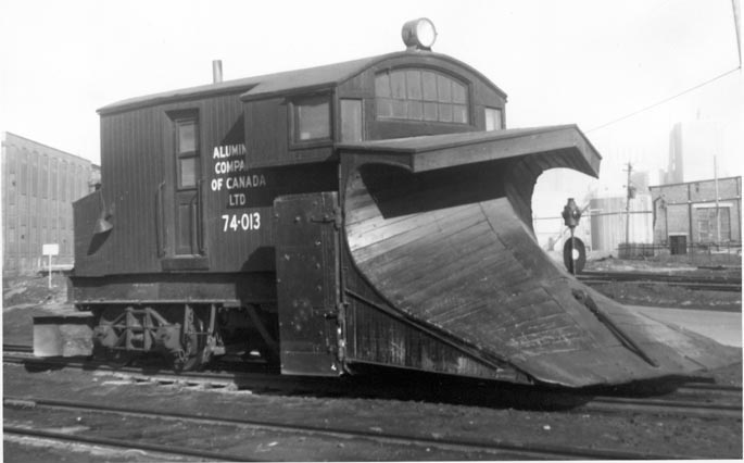 1. Alcan 74-013 Made from the frame of one of the electric motors. Manufactured at the Chicoutimi Pulp Companys shops probably in 1911. Sold to ACOC in 1936. Arvida. 2. Plow #2 Acquired by R&S from ACOC in 1943. Construction date unknown. Arvida 3. Plow #3 Eastern Car Company 12/1928. Arvida