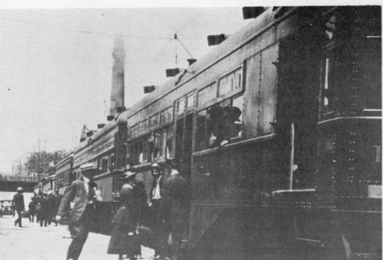 Keele Street Three radial cars m.u. train loading for Guelph. Weston and Davenport