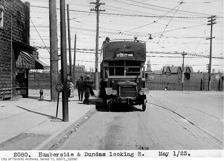 Route 1 Humberside Avenue The first bus route began September 20, 1921. It ran from Dundas Street west along Humberside Avenue to High Park Avenue, then north to Annette Street. On December 5, 1922 it was extended farther west along Annette to Jane Street.
