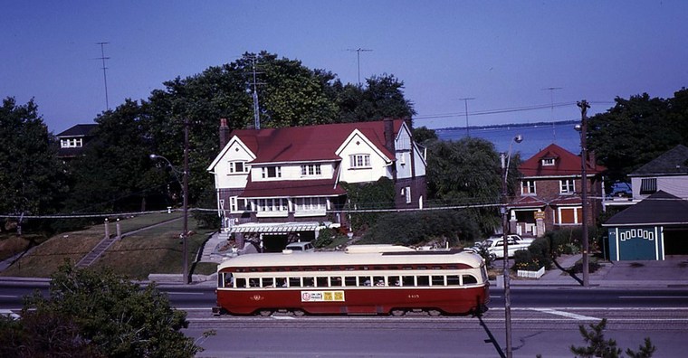 Long Branch route car 4415 eastbound on Lake Shore Rd. in Mimico. 8/1966 Paul McGrane Collection