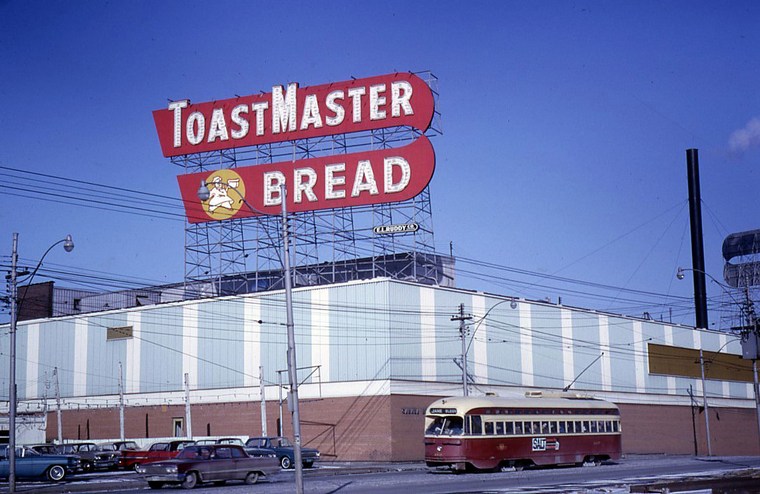 4417 westbound BLOOR car to JANE passing Canada Bread
