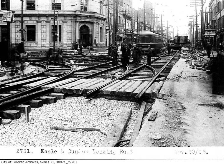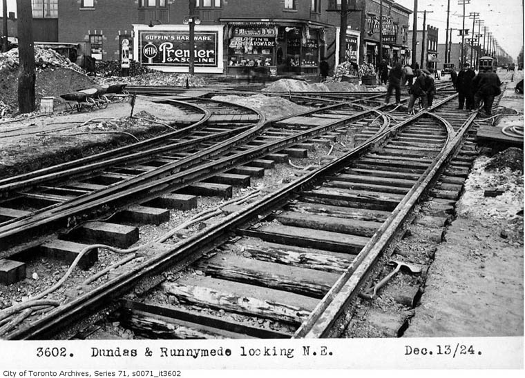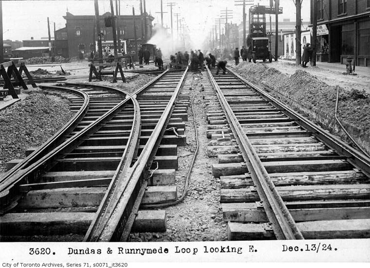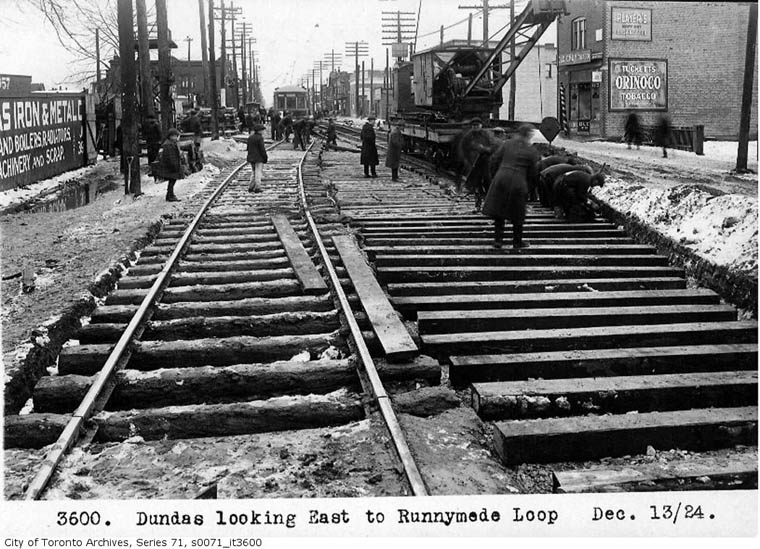 Tracks allow Lambton cars to return west and Dundas cars to return east from Runnymede Loop.