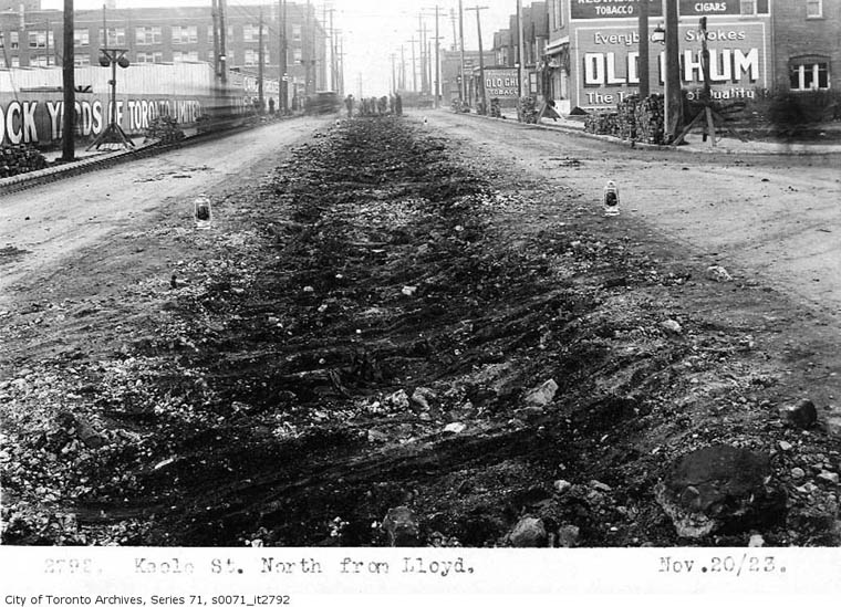 Total disruption! Smoke stack at right in distance is at Heintzman piano factory.