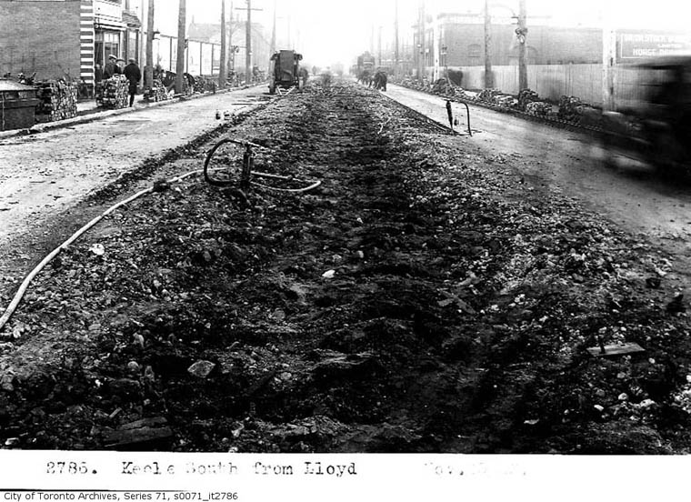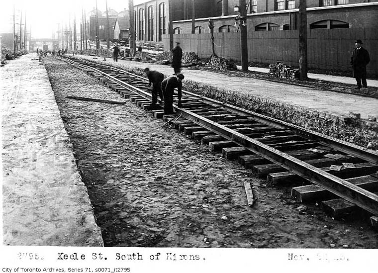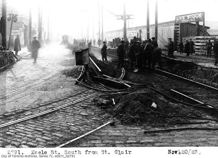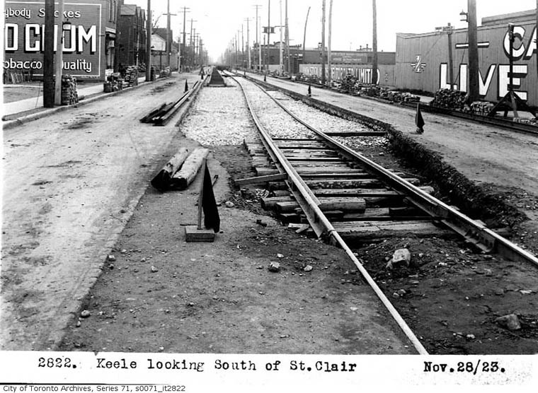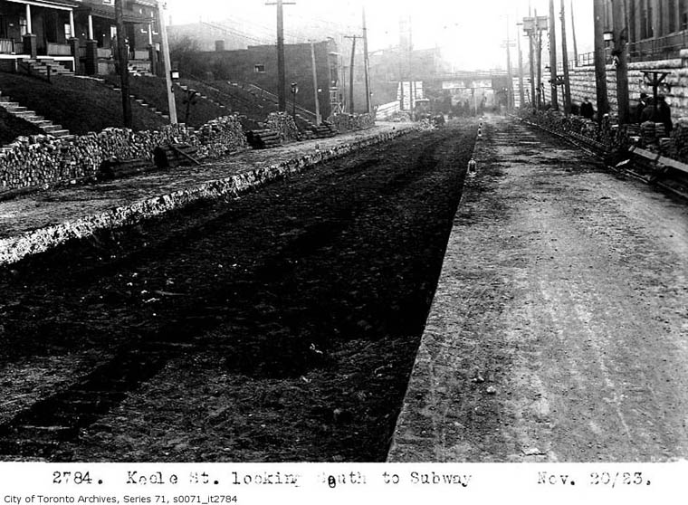 CPR West Toronto shops at right take up the entire distance from West Toronto Street to subway.