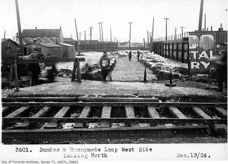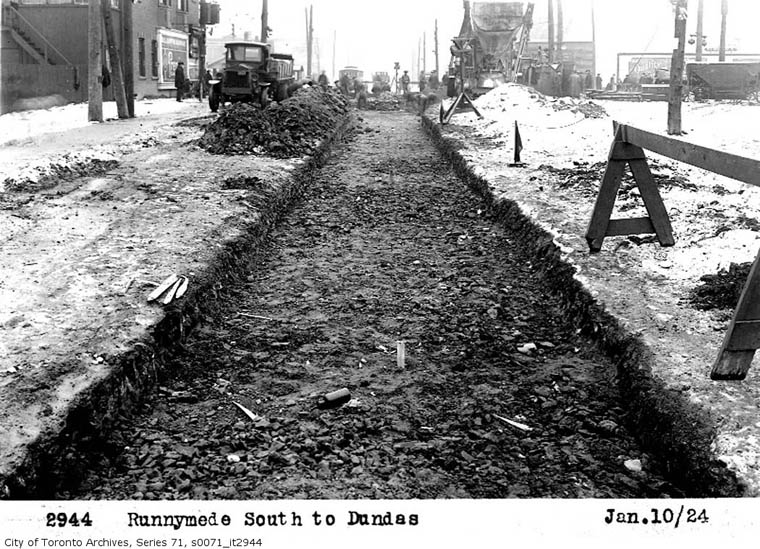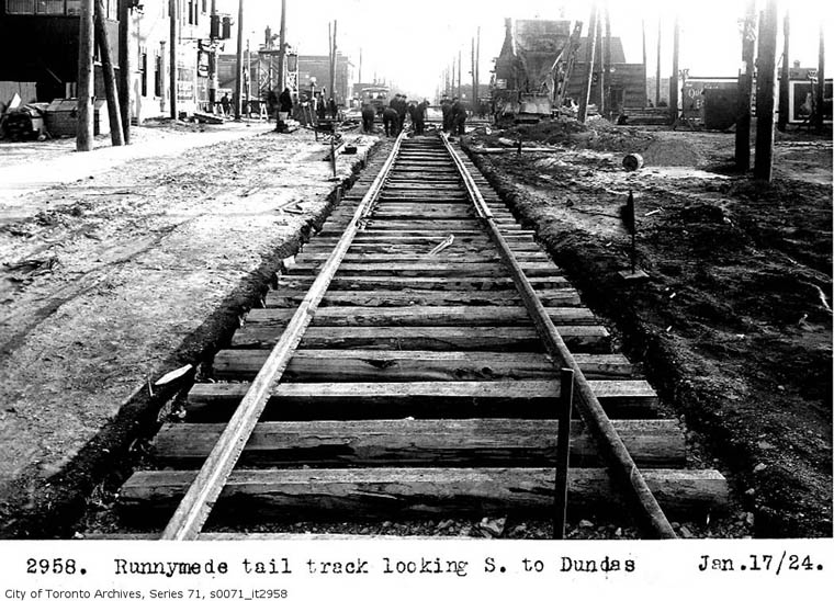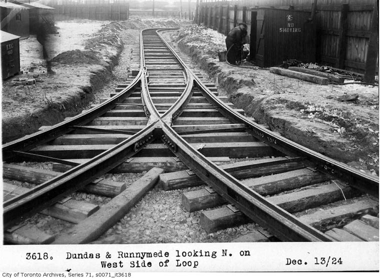 A few years later this was all changed when two tracks were run north on Runnymede under the CPR subway to St.Clair Avenue to get to a new car barn which was never built and the tracks themselves were never used!