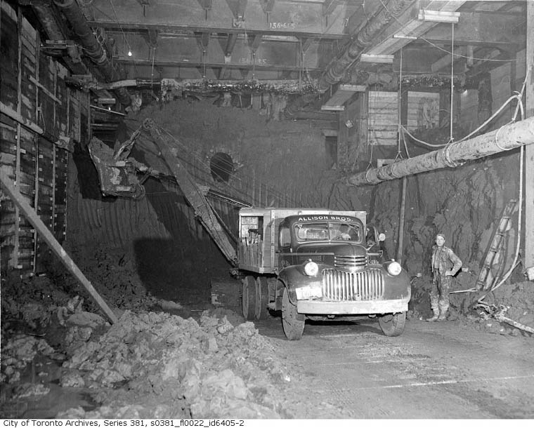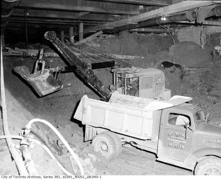 Two views of the work underground shows some of the work hidden from view. Above: Shuter Street December 29, 1949 and below: June 2, 1950